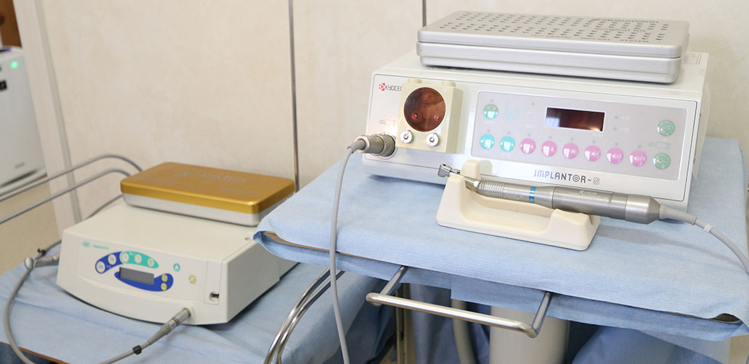 インプラントを埋め込むときに使う機器です。適切な回転数やトルク(インプラントをどの程度の力で締め込むのかの値)で埋め込めます。
